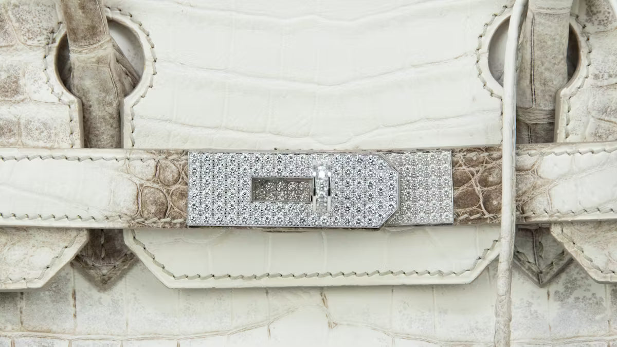 Kelly 35 Matte White Himalaya Nilocoticus 18K White Gold & Diamond hardware