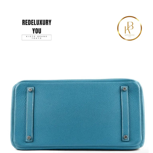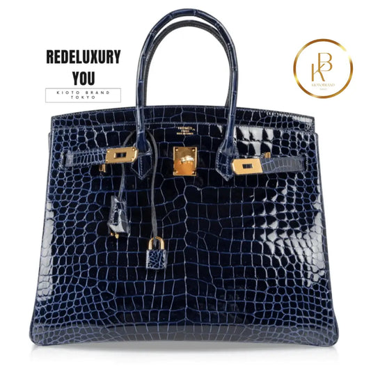 Birkin 35 Bleu Zellige Shiny Porosus Croc