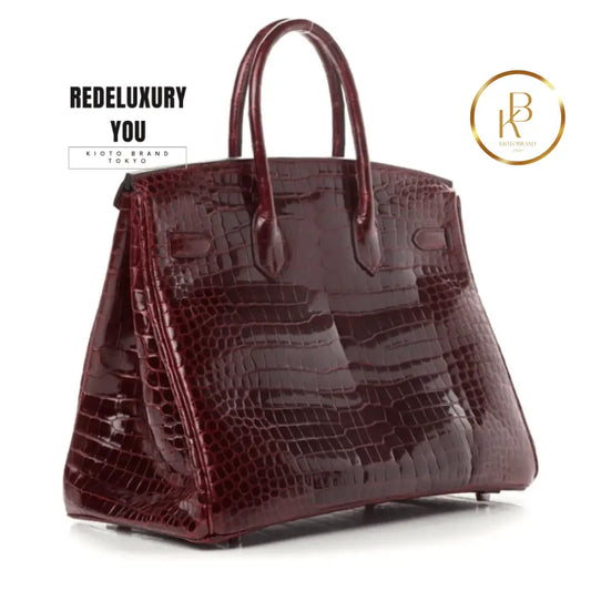 Birkin 35 Burgundy Red Shiny Porosus Crocodile