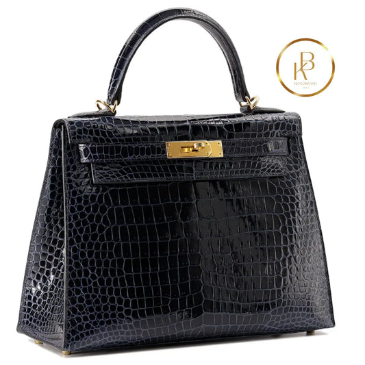 Kelly 28 Sellier Porosus Croc Bleu Baltique