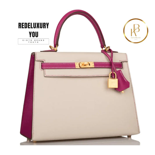 Kelly 25 (HSS) Rose Pourpre & Craie Brushed Gold Hardware (Special Order)