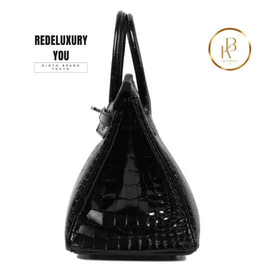 Birkin 25 Shiny Porosus Croc Black Palladium